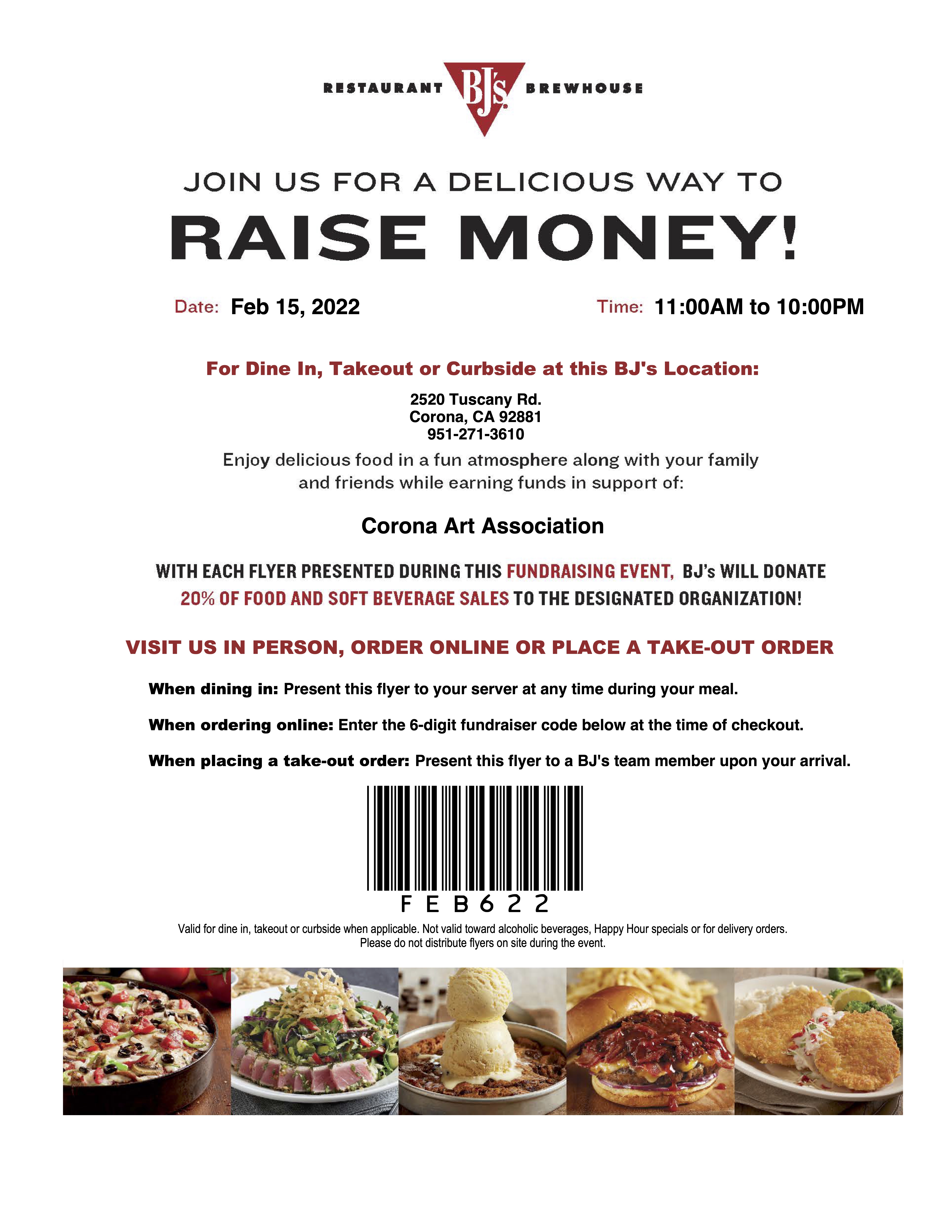 Dine Out Fundraiser @ BJs Pizza (Corona) 2/15/2022